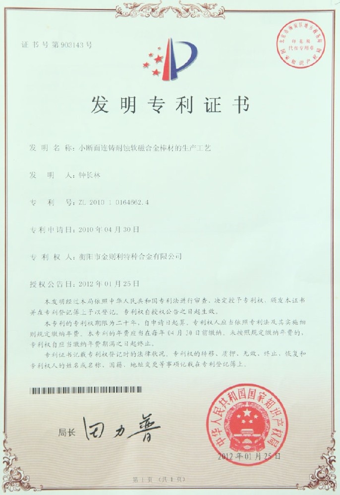 衡陽(yáng)市金則利特種合金股份有限公司成立于一九九九年十二月,注冊(cè)資本人民幣兩千兩百萬(wàn)元。注冊(cè)地址:衡陽(yáng)市雁峰區(qū)白沙洲工業(yè)園長(zhǎng)塘路2號(hào)。公司主營(yíng)耐蝕軟磁合金,為湖南省高新技術(shù)企業(yè)。公司自成立以來(lái),即致力于耐蝕軟磁合金的研發(fā)。 研制出的JL-31(00Cr13si2Pb)、JL-31B(00Cr13si2)、JL-31BS(00Cr13Si2S)、JL-37B(0Cr17Si2)、JL-37(0Cr17···